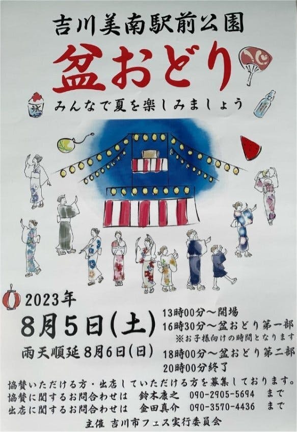 8月5日吉川美南駅前にて盆踊りです。キッチンカーキットで出店します。