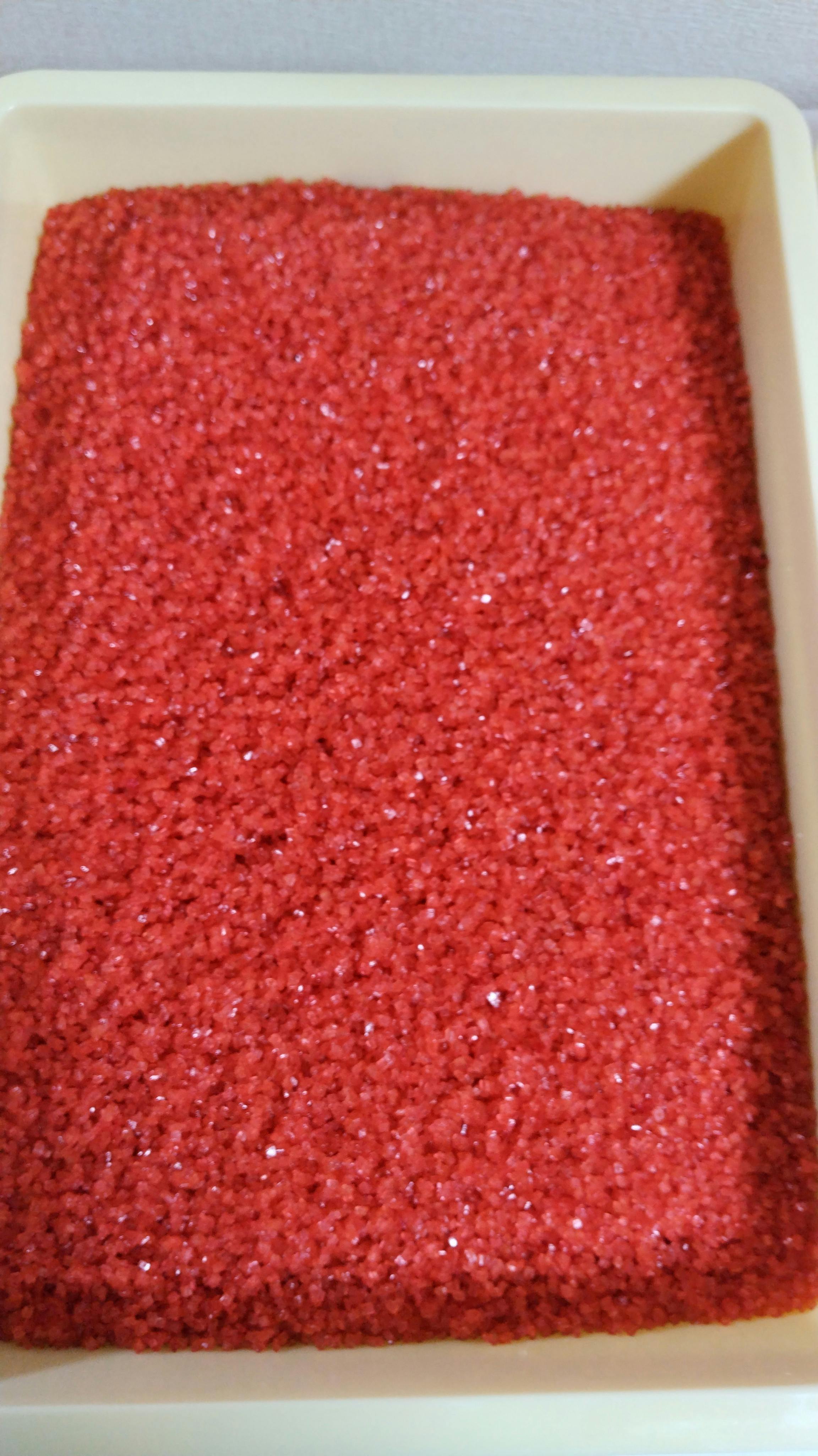 写真はわたあめ用の色、味付きザラメです。色素で着色して乾燥後着香です。