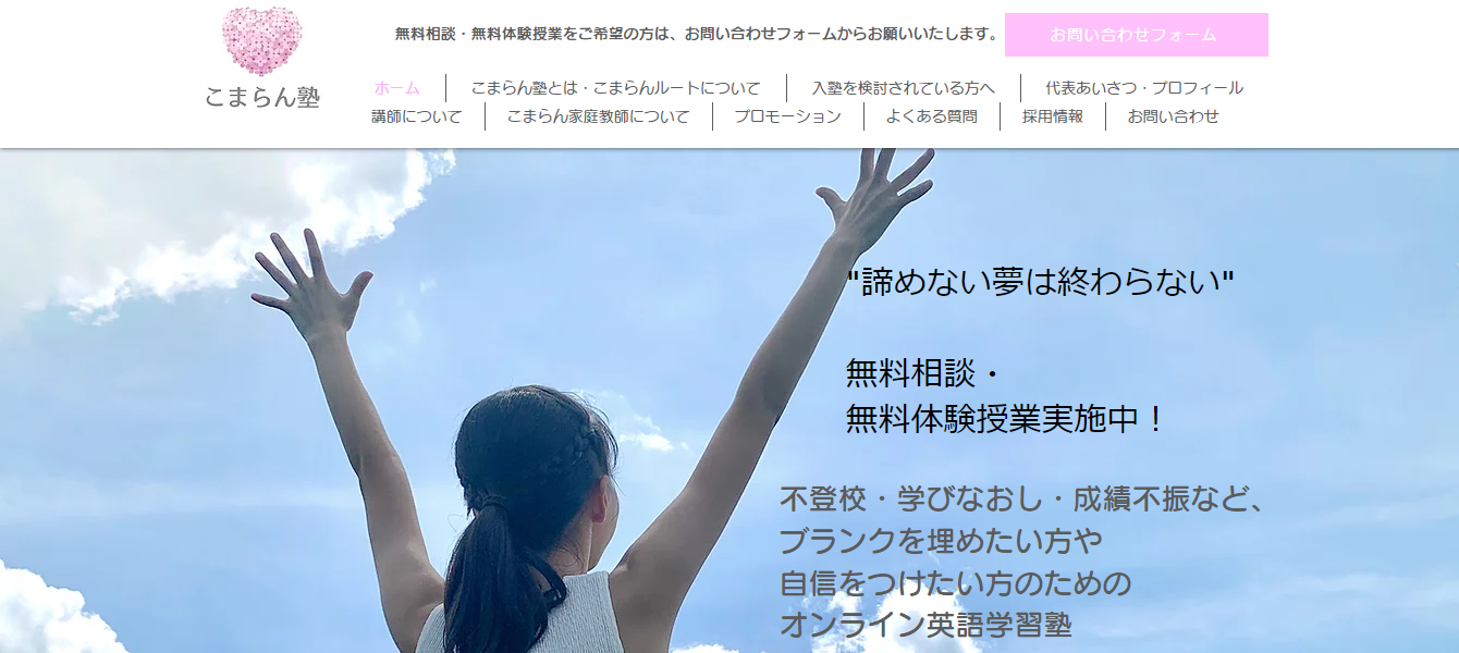 こまらん塾は、不登校・学びなおし・成績不振など、ブランクを埋めたい方や自信をつけたい方のためのオンライン英語学習塾です。
