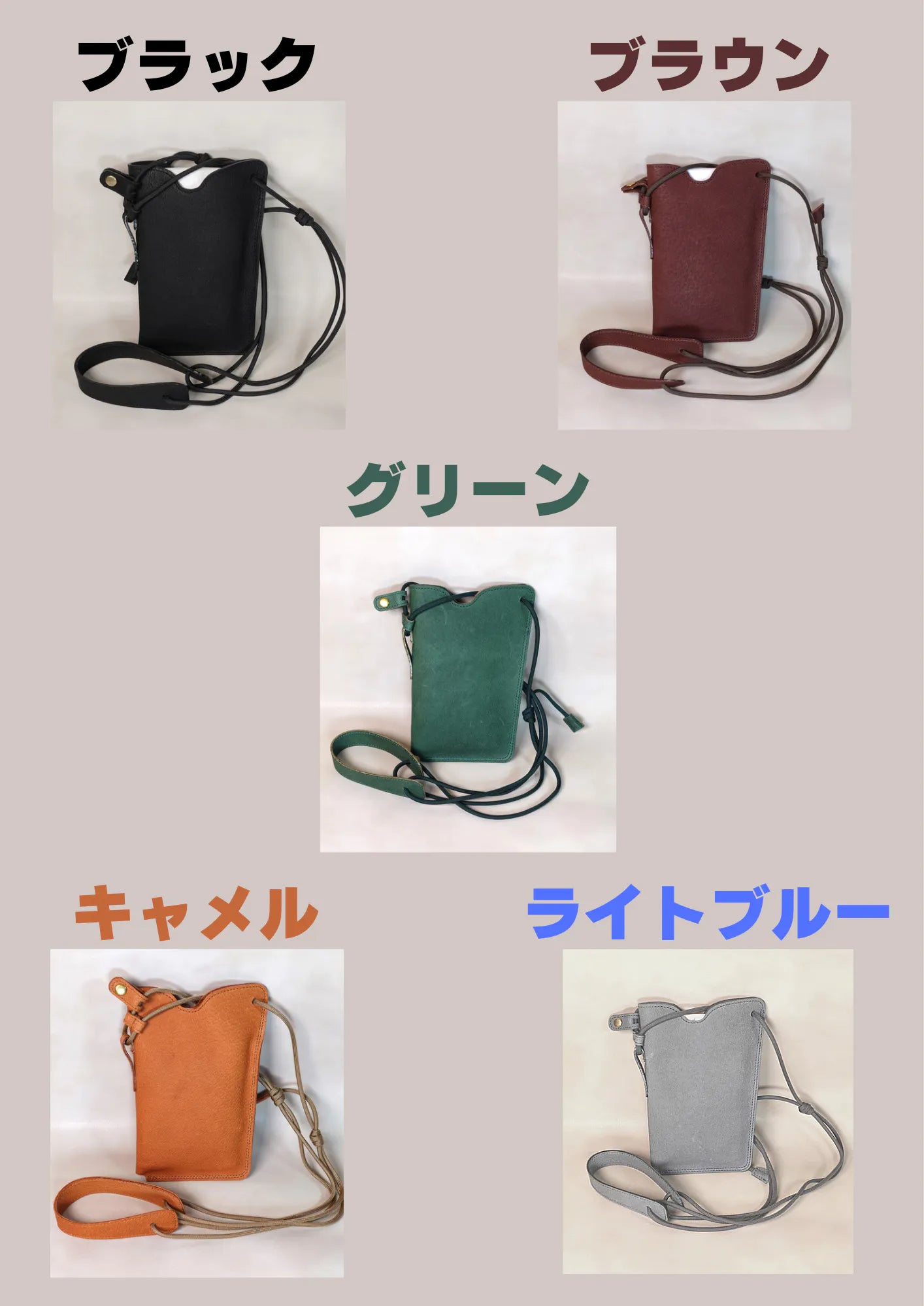 計5色(ブラック・ブラウン・キャメル・グリーン・ライトブルー)
