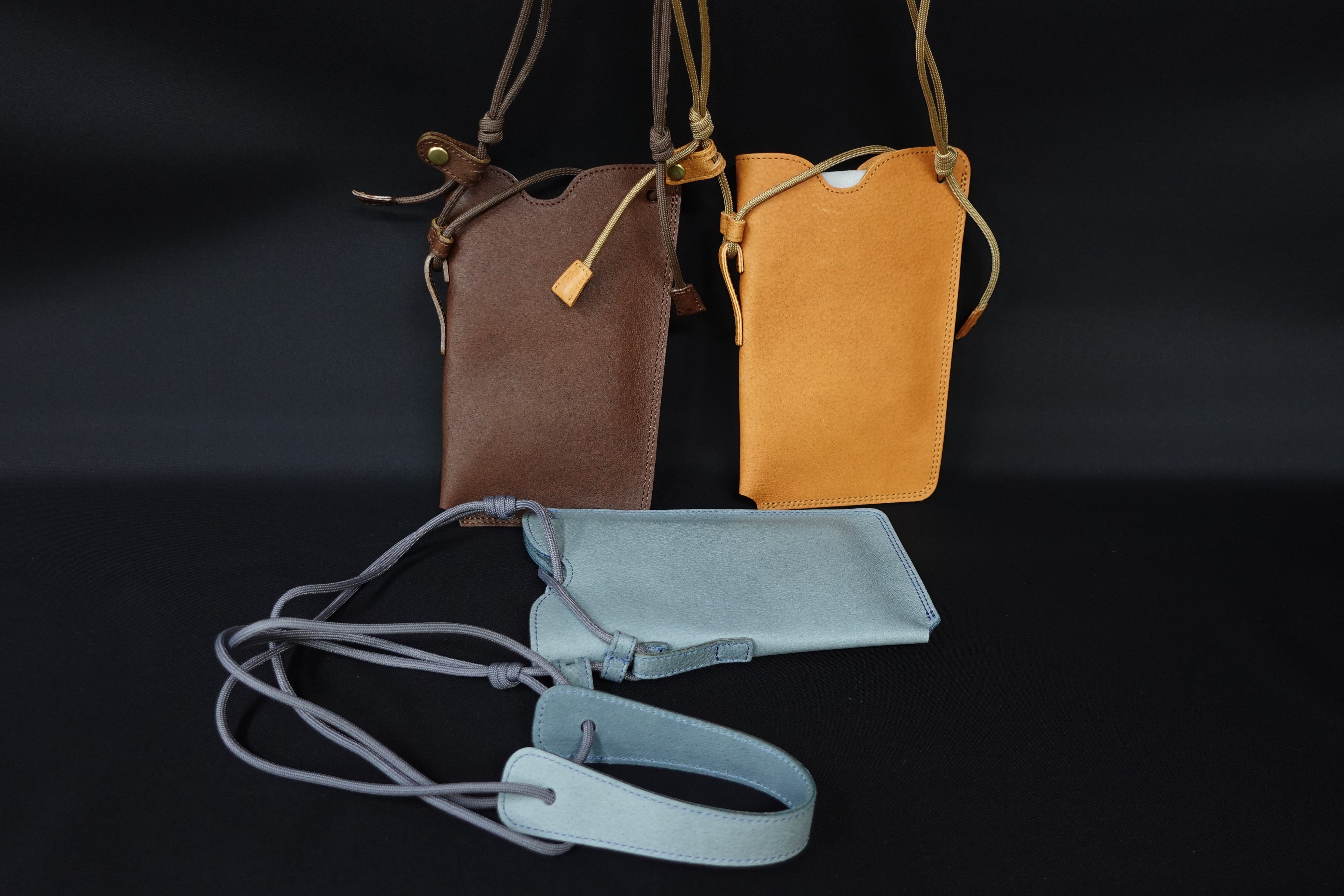 国産ナチュラルレザーの「スマホショルダー」自分はこの様に携帯電話はもちろん、キーホルダーやペン差し、名刺も入れて使っております。みなさんも是非、使ってみてください。よろしくお願いします。