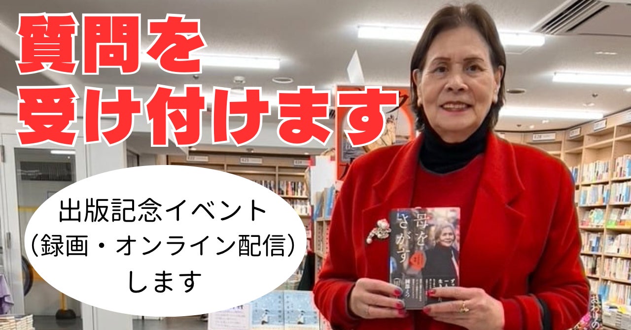 イベントでは、わたくし岡部えつが、ベルさん(堤麗子さん)と、『母をさがず』に何度も登場する水島文夫さん、それぞれにインタビューあるいは対談の形でお話をうかがう予定です。様々な事情や配慮から『母をさがす』には書けなかったことや、脱稿後に起こったできごとなどについても、たっぷりお話できると思います。