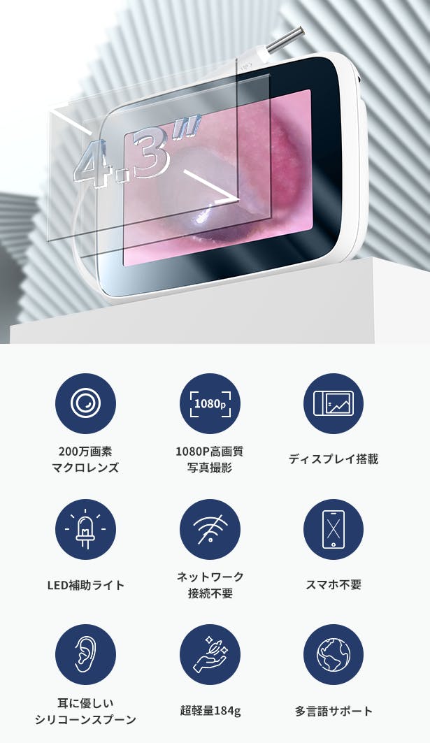 MS430があれば、耳かきが驚くほど楽チンに。高画質のディスプレイで耳の中を見ながら掃除でき、うっかり皮膚を傷つけてしまうことを避けやすくなります。