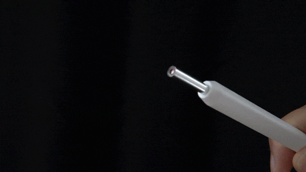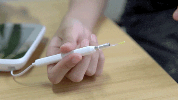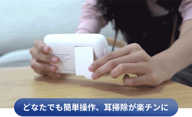 耳かきスプーンを撮影ヘッドの尖端に取り付けるだけで、耳の中をはっきり見ながら掃除することができます。