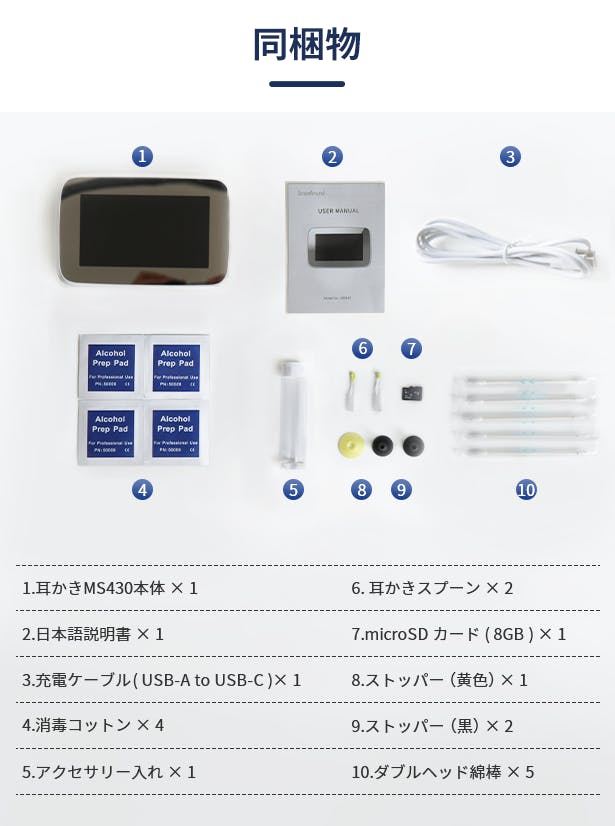耳かき「MS430」は、スマホ不要で耳の中をはっきり見ながら掃除できる画期的な耳かきです。専用のツールも豊富に付属しており、すばやく耳掃除を完了できます。