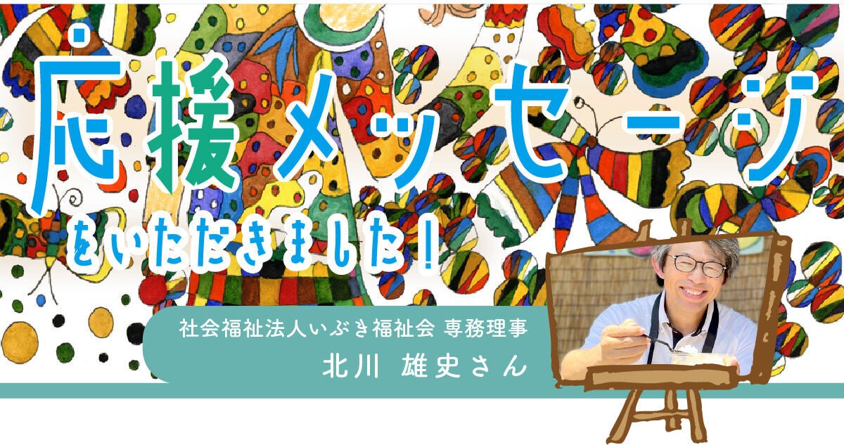 岐阜にある社会福祉法人「いぶき福祉会」専務理事の北川さんから、応援メッセージをいただきました!<大好きなまると出会って13年がたとうとしていますクリエイティブで彩り豊かでカッコよくてアクティブでおおらかで訪ねる人、作品にふれる人が自然に笑顔になって、想像するだけで心の温度が0.5℃上がってしまうそんなまるが大好きです。僕の知っているまるの人たちは、いつも悩んでていつもどうしようかってイジイジしててよかったかなぁっていちいち凹んでときどき、コンチクショーって思ってたりして(言葉にはしないけれど…)でも、そのあと、ちゃんとメンバーさんやつながる人たちのHappyに結びつけて、よかったよな!すごいよな!ありがとな!またやろな!って少年みたいに一緒に喜んだりしている素直って最高だと思う強さってしなやかさのことなんだと思う羨ましくて、僕もそうなりたいと、一緒に笑いながらいつも思うまるを訪ねるたびに、僕はいつも吉田さんと2人で海を眺めます渡船で渡る能古島僕は、いぶきに集うすべての人が「かけがえのない存在」になることを願い吉田さんは、まるのメンバーひとりひとりにある役割を立ちのぼらせることを描きいろんな人たちの日々の営みを、社会の価値に、社会の希望と安心の灯火にしていく物語を綴りますそんな話を10年以上…たんぽぽの播磨さんには遠く及ばないけれどひょっとしたらユヴァル・ノア・ハラリより早いかもしれない…一歩ずつ、一歩ずつ歩んでいきたい工房まるは、私たちいぶき福祉会にとってかけがえのない協働のパートナーですまるの人たちに心を寄せる人たちがもっともっとたくさん増えますようにまるの描く未来に、みなさまの応援と参加を心よりお願い申し上げます北川雄史|社会福祉法人いぶき福祉会専務理事>