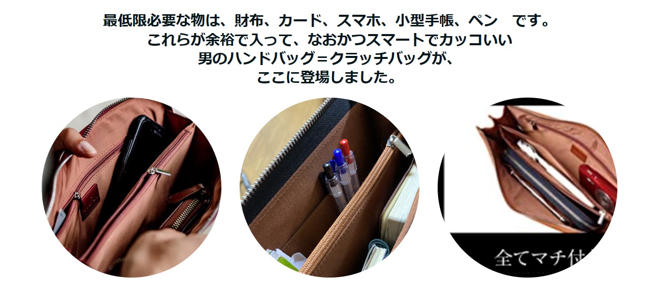 こんにちは、有限会社野村書店野村浩です。今回は日本でも実用的なかっこいいクラッチバッグをご紹介します。日本人で普段財布を持たずに外出する人は何%でしょう?財布無しでスマートに行動する国もあります。そのような人向けのクラッチバッグは多くありますが、財布が入りません。そこで今回ご紹介するのは長財布も入ってスマートでカッコイイ男のクラッチバッグの集大成版!です。