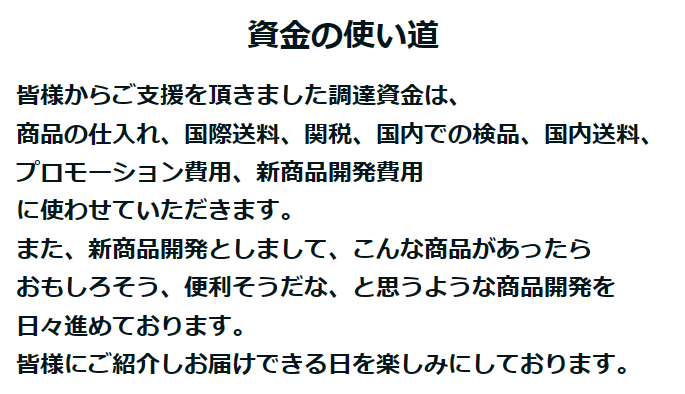 本プロジェクトはAll-or-Nothing方式で実施します。目標金額を達成した場合のみ計画を実行し、リターンをお届けします。