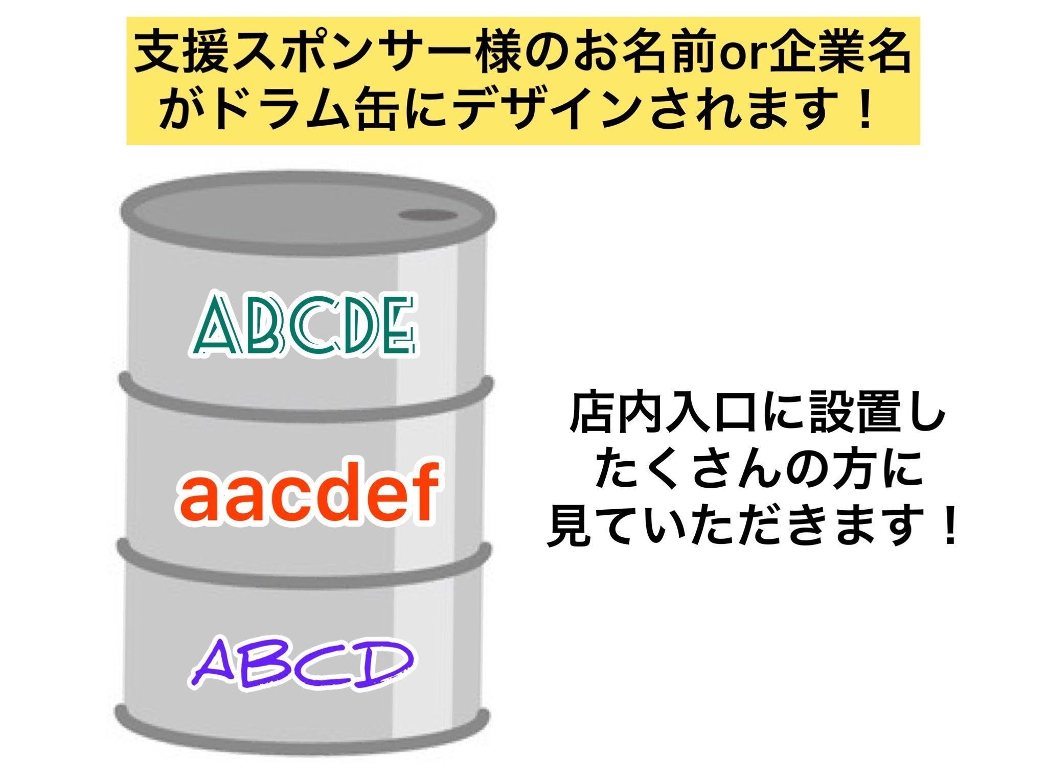 ※ドラム缶にネームデザイン表示できるのは支援者の個人名およびお勤めの企業・所属団体・活動グループ名とさせていただきます。