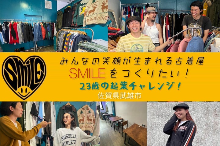 私は生まれ育った武雄市で古着屋をOPENするのが目標でした。ファッションという観点からから武雄市を少しでも盛り上げていきたいと思ってます。このSMILEを通して沢山の笑顔が生まれて、性別、年齢問わずに沢山の人が繋がれる場所にしたいと思います。その為には皆様のご協力が必要です。どうかよろしくお願いいたします。
