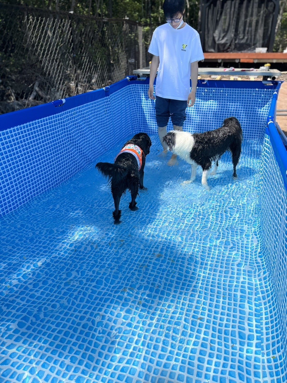 大型犬達のアクティブさにプールの支柱が折れるなどのアクシデントもありました。