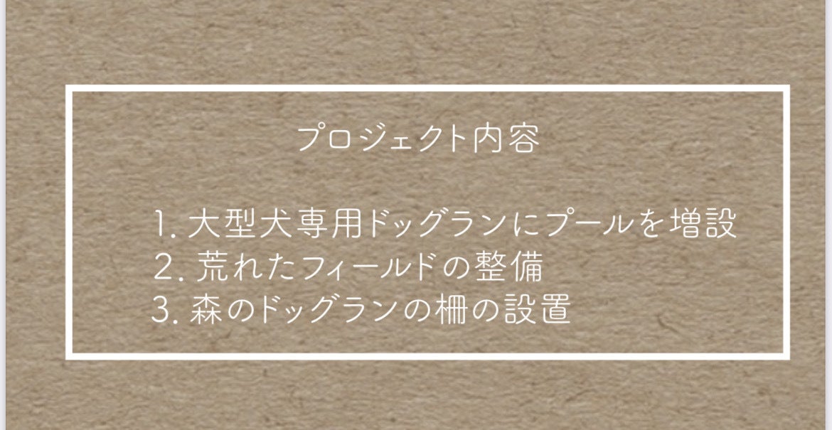 その為に壊れないプールやフィールドを整備し思い切り走り回れるドッグランにしたいです。