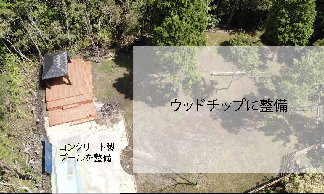 ※今回のクラウドファンディングで全額集まらなかった場合は、プールの大きさの縮小(270m×450cm)、ウッドチップラ ンの整備は中止といたします。