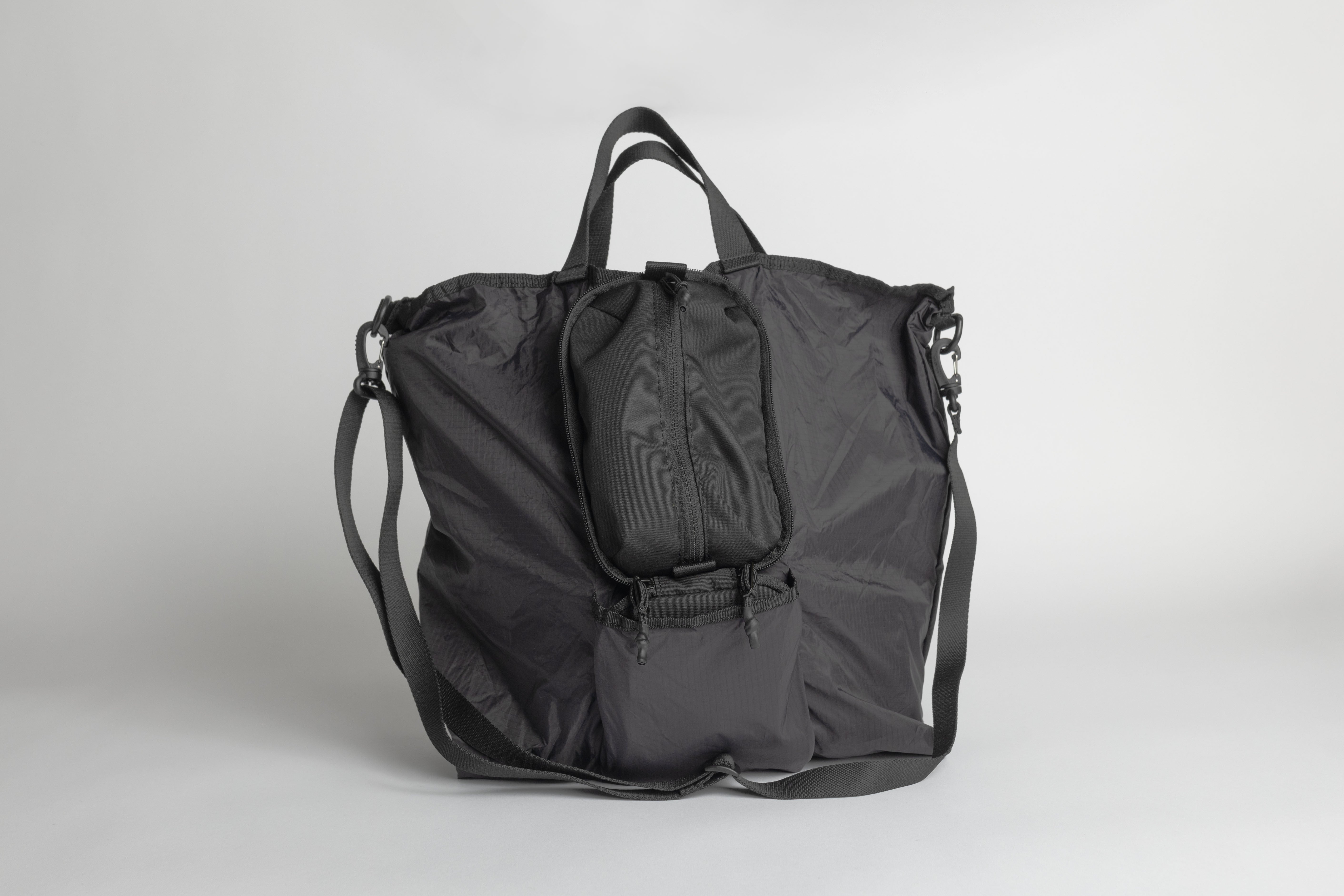 トート兼ショルダーバッグはパッカブル仕様で簡単に変形