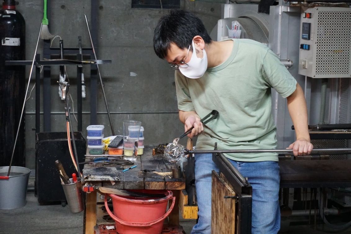 2023/07/02 13:29ガラスの魅力ってなに??みなさんが考える「ガラスの魅力」はなんですか?もちろん人によって答えは様々だと思いますが、今回ガラスの魅力に迫るため、贈り物応募企画の「ガラスの薔薇」の制作を担当した林拓緯さんにお話をお伺いしてきました!きっかけはテレビで目にしたガラス職人高校時代、高齢になっても現役で活躍するガラス職人をテレビで目にし、「自分も歳をとってもこの人みたいにかっこよく仕事をしていたい」と思い、ガラスの道に進むことを決断した林さん。秋田の大学を卒業後、富良野のガラス工房で8年間働き、堺町にある現在の工房を構えました。堺町にある林さんの工房「硝子工房 nico」正解がないから難しい独立して6年、「ガラスの技術は先人たちの苦労の積み重ね。でも、それをそのまま使うのではなく、『なぜ違うやり方をしなかったのか』『今の技術を使って新しいことができないか』など、日々考えながらガラスを作っている。思ったようにできないこともあれば、ダメだと思っていたら意外と上手くいくこともある。正解がないから難しい」と話しつつも、その難しさがあるからこそ生まれる探究や挑戦におもしろさを感じているようにも思えました。大切なあの人に贈る ガラスの薔薇今回制作したオブジェ今回「ガラスの贈り物応募企画」のオブジェとして制作したガラスの薔薇には、「正解がない」というガラスの難しさでありおもしろさが表現されています。林さんが当初考えていたのは、花びらの部分を不透明にすることでしたが、花びらの重なりがうっすら透けるようにする方がしっくりきたことから、当初の想定を変更し透明感を出しました。その結果、入り込む光によって花びらが様々な表情を見せ、見れば見るほど植物としての生命力や神秘性が感じられます。また、オブジェの土台になる部分には、細かく割ったガラスを混ぜ合わせることでキラキラと輝き、繊細でありながらもを凛とした存在感を放っています。応募は当日会場で1個限定で用意したクラウドファンディングのリターンは受付終了となりましたが、同様のものを小樽がらす市当日会場で展示するとともに、感謝の気持ちとともに贈りたい人を募集し、後日一名にプレゼントします。応募用紙は会場に設置するほか、ホームページでもダウンロードできますので、ぜひ当日会場でご応募ください!林さんとガラスの薔薇 もっと見る