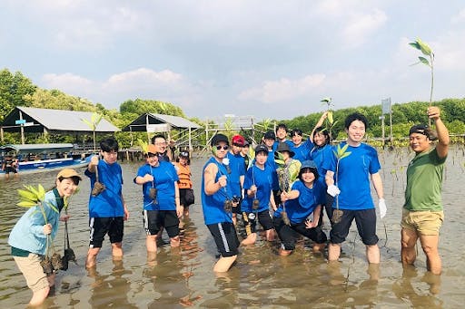 このプログラムでは、カンボジアに渡る前に現地学生と英語でのオンラインディスカッションを行って交流するなど事前研修を実施します。そのうえで、孤児院やJICAカンボジア事務所への訪問、マングローブの植林などの現地研修を行い、開発途上国の現状を目で見て、肌で感じる機会を提供しています。