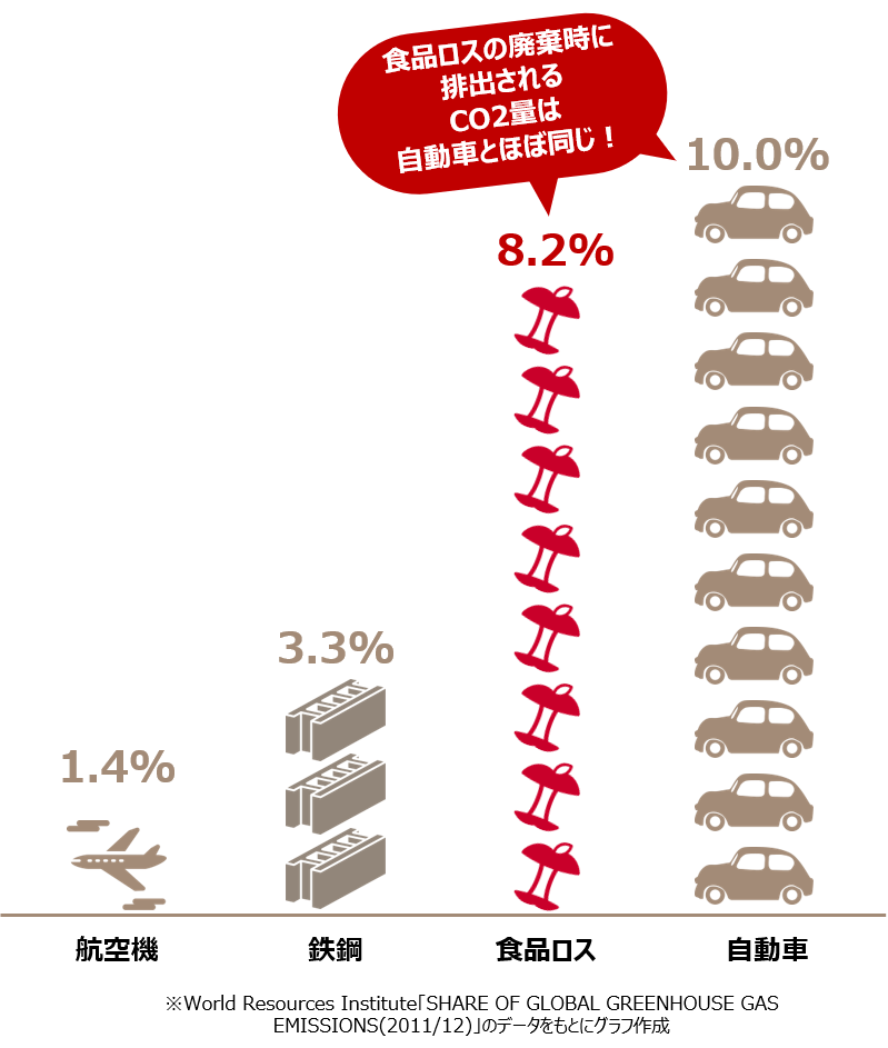 品質には問題ないのに見た目が悪いだけで捨てられてしまうのはもったいないということに加えて、ごみ処理の際に排出されるCO2量の増加にもつながります。