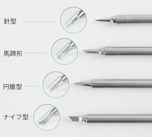 このほか、作業に合わせて針型、円錐型、馬蹄形をお選びいただくこともできます。