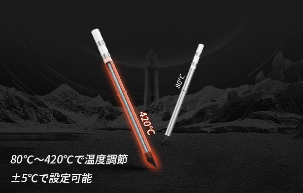 また、温度は80℃~420℃の間で±5℃で調節できます。幅広い温度設定で、多様な作業に対応可能です。