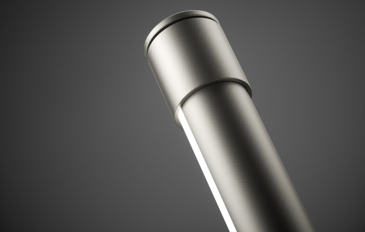 ボタン1つで3段階の調色と4段階の調光が可能で、さまざまな照明環境に対応します。スイッチはライトの先端にあり、目立たたず調節も簡単です。