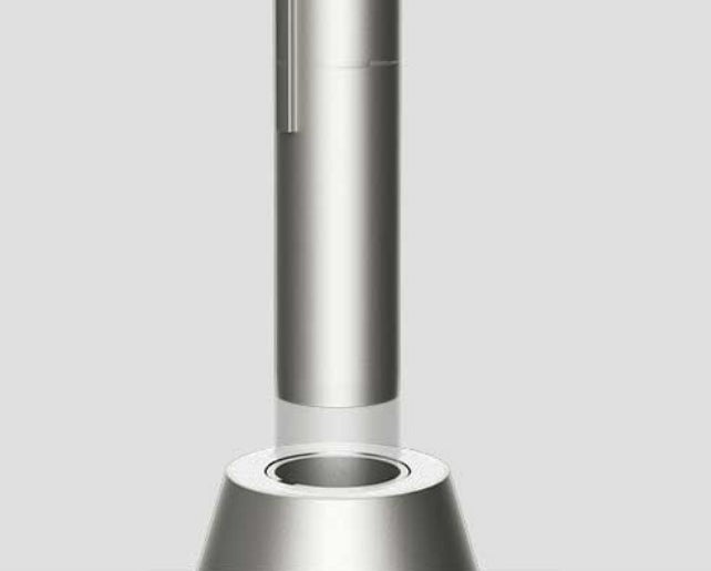 ベースは円錐形に設計されており、重心が低いため倒れにくくなっています。