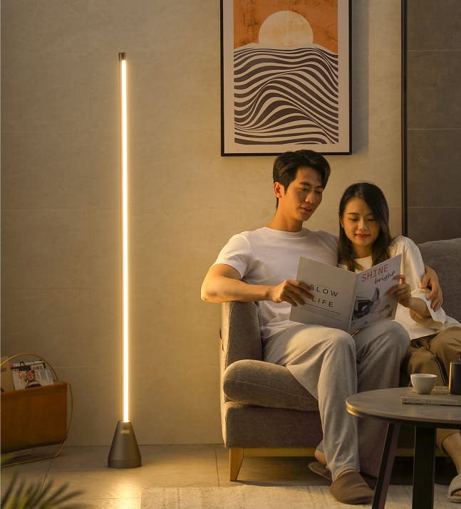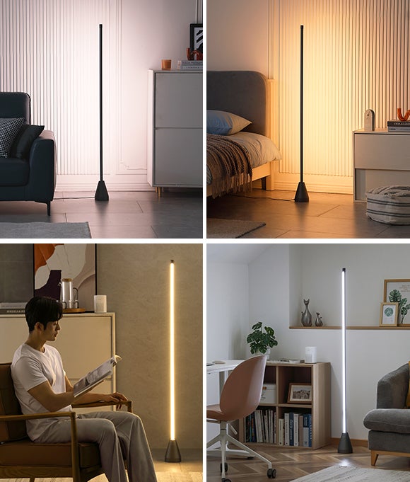 スリムでミニマルなデザインなので、様々なインテリアに良く馴染みます。ソファでくつろぐ時、読書する時に手元を明るくして欲しい時、ベッドルームでリラックスする時など、シーンに合わせて必要な場所を照らしてくれます。