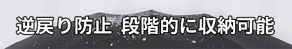 Point 1:逆戻り防止機能搭載。収納の途中で手を放しても飛び出しません。