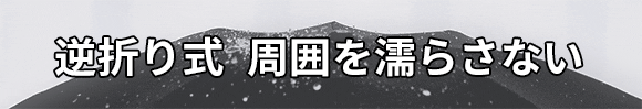 Point 2:逆折り式。濡れた部分を内側にして畳むため自分も周りも濡らしません。