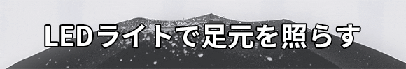 Point 3:LEDライト内蔵。ワンタッチで点灯し約10m先まで照らします。