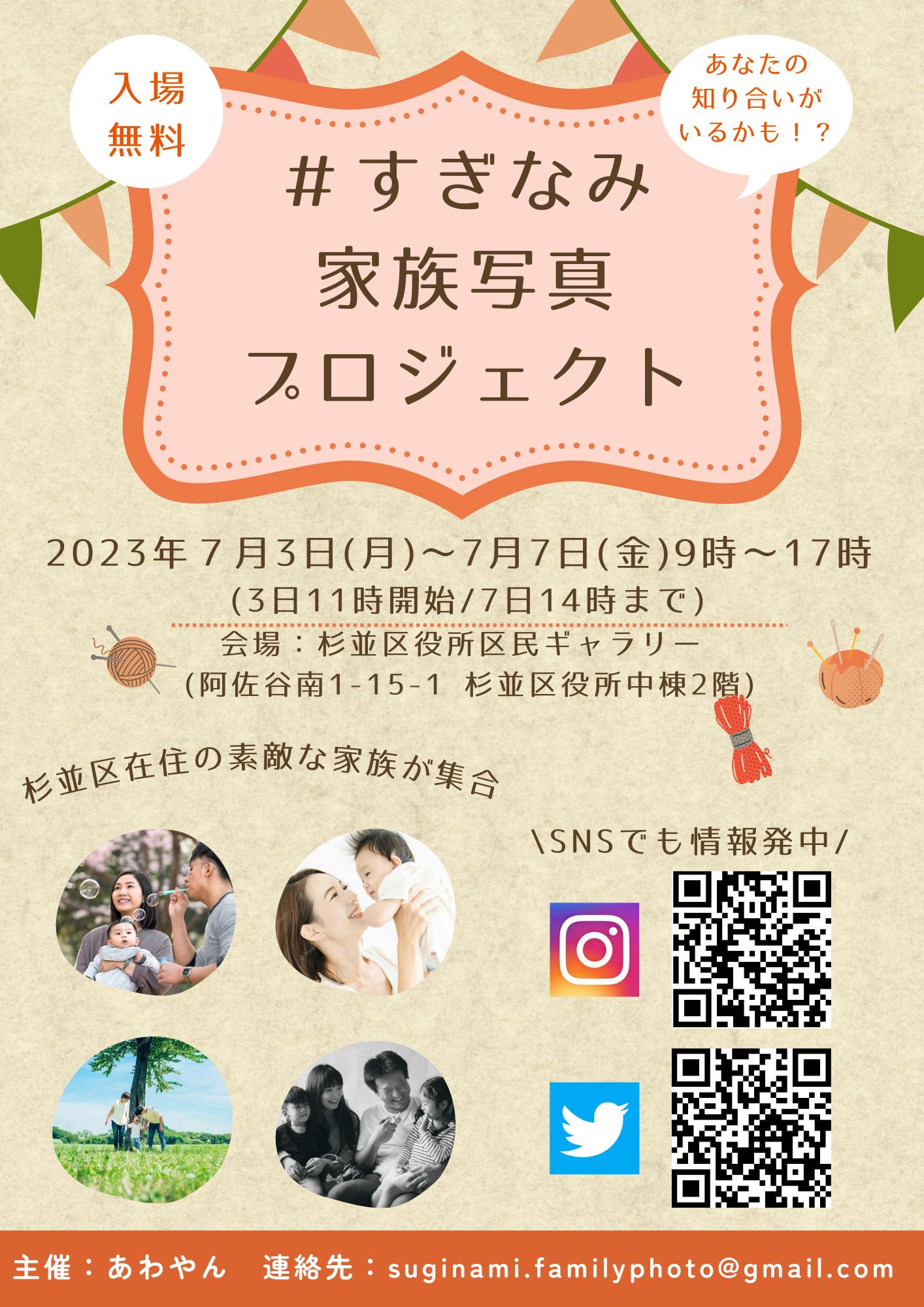その中で、大好きな杉並区で子供が伸び伸びと過ごしているシーンや瞬間をもっと発信し、子育てがしやすい杉並区として発信、地域貢献したいと考えました。どうやって発信すれば?と考えた際に杉並区役所の区民ギャラリーが利用できると知り、これしかないと思い、写真撮影が素人ですが個展の実施に踏み切りました。