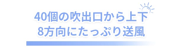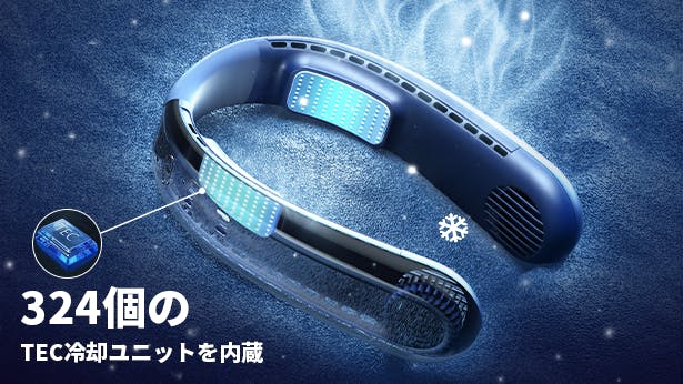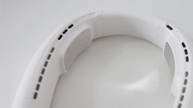 WT-F63は、40個の吹出口から上下8方向に送風しますので、首回りを360°から冷やすことができます。空気の吸引口にあるタービンが回転して空気を吸い込み、圧力の差によってパワフルな風を送り出すことが可能です。