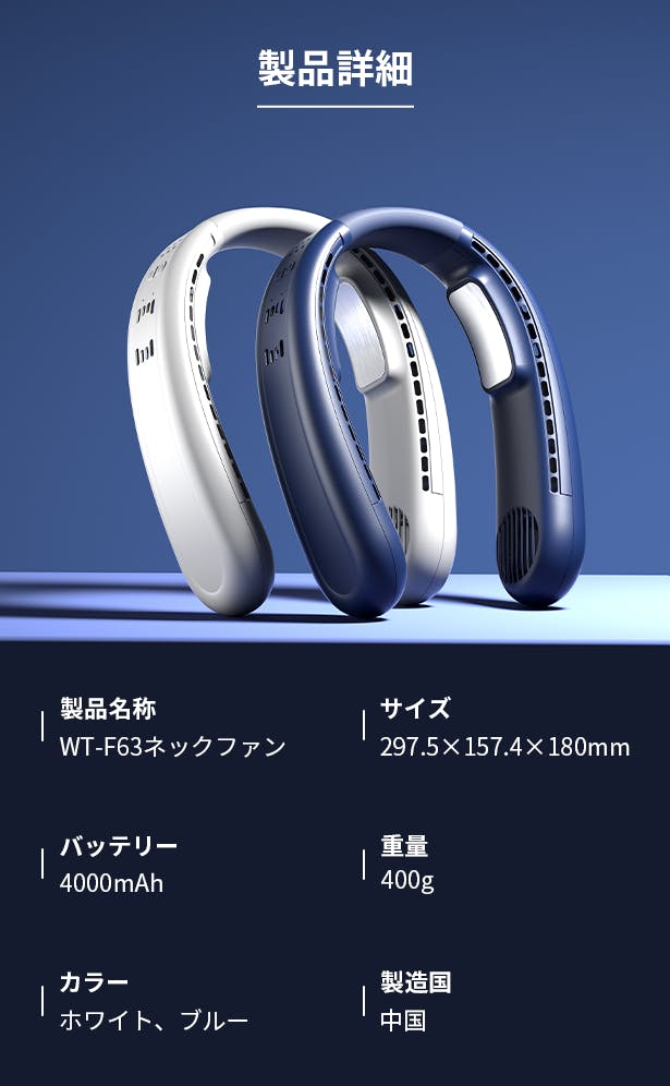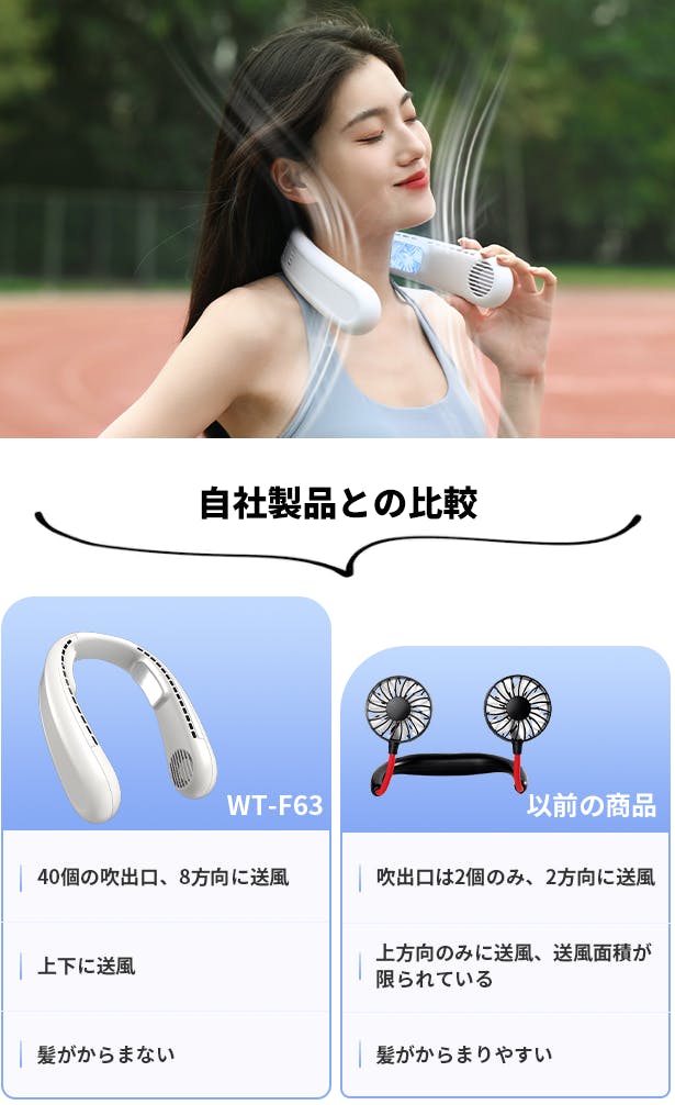携帯用扇風機は便利そうだけれど、どれがよいか迷われている方も多いのでは?そこでネックファン「WT-F63」をご紹介します!