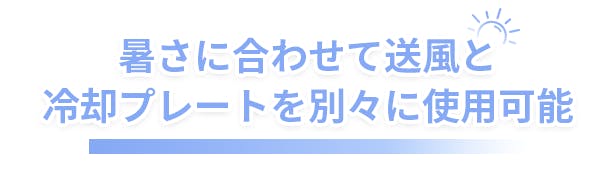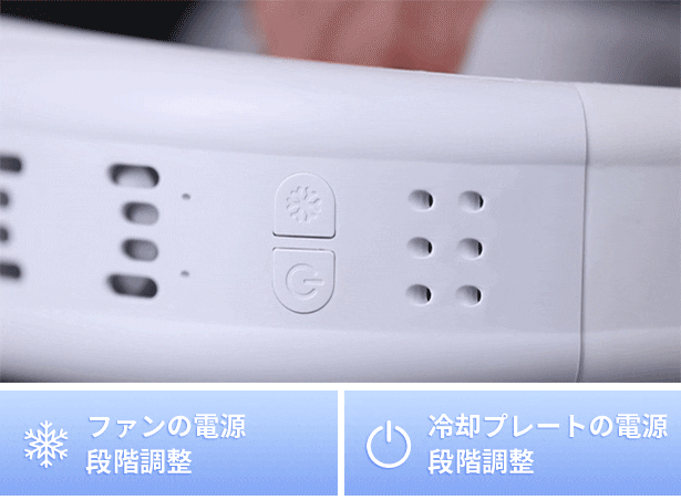 それほど暑くないので送風だけ使いたい、または冷却プレートだけ使いたい…そんな使い方ももちろんOK!ファンと冷却プレートの電源は、ワンボタンで簡単に操作することができます。