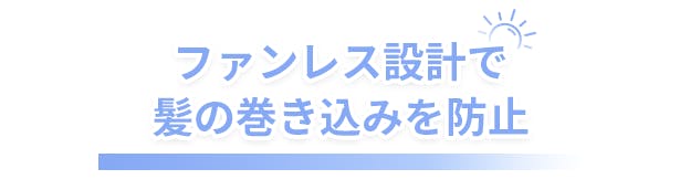 ファン付きの首掛け式扇風機は、髪や服の一部が巻き込まれてしまうことがあります。WT-F63はファンレス設計を採用し、この問題を解決しました。また、隙間がないので、お子様の指が誤って入ってしまうこともありません。