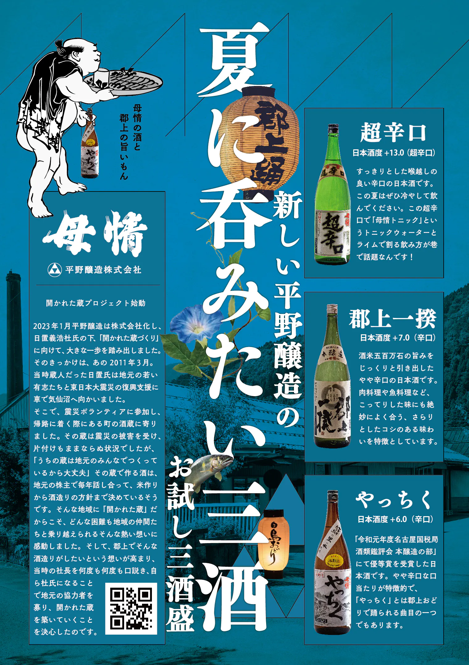 また、これまでの平野醸造の歴史が詰まった建物、道具類を間近に感じていただくことで、さらに母情の日本酒を楽しんでいただくきっかけになれればと思います。