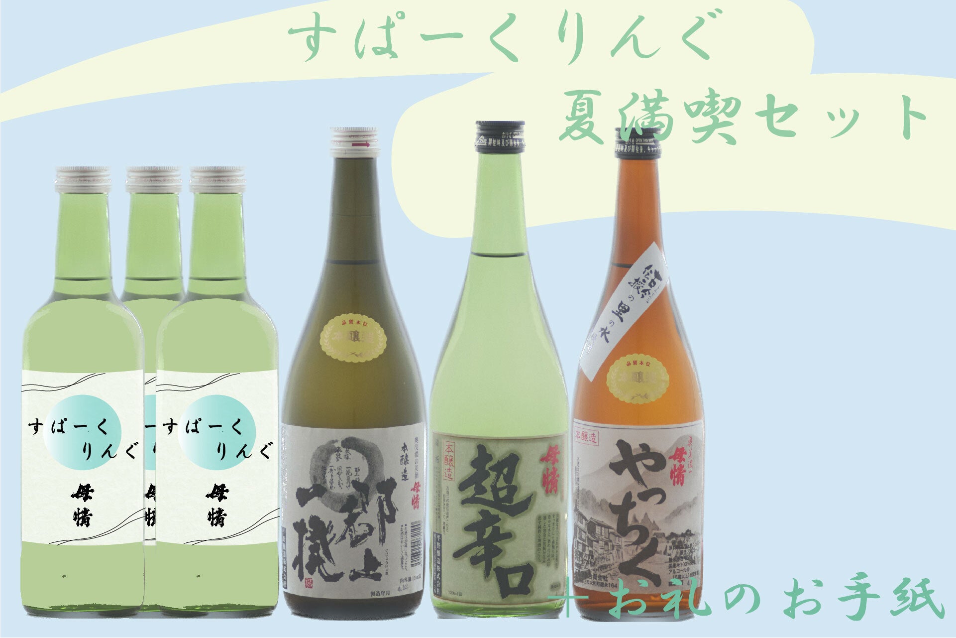 さらに今回は、このスパークリング日本酒を中心に、この夏、特に楽しんでいただきたい日本酒3種類を特別なセットにしたリターン品をご用意しました。