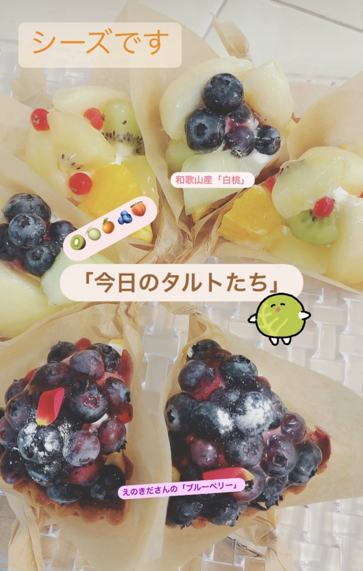 さて、お店ではフレッシュなフルーツのタルトたちをご用意してます♪