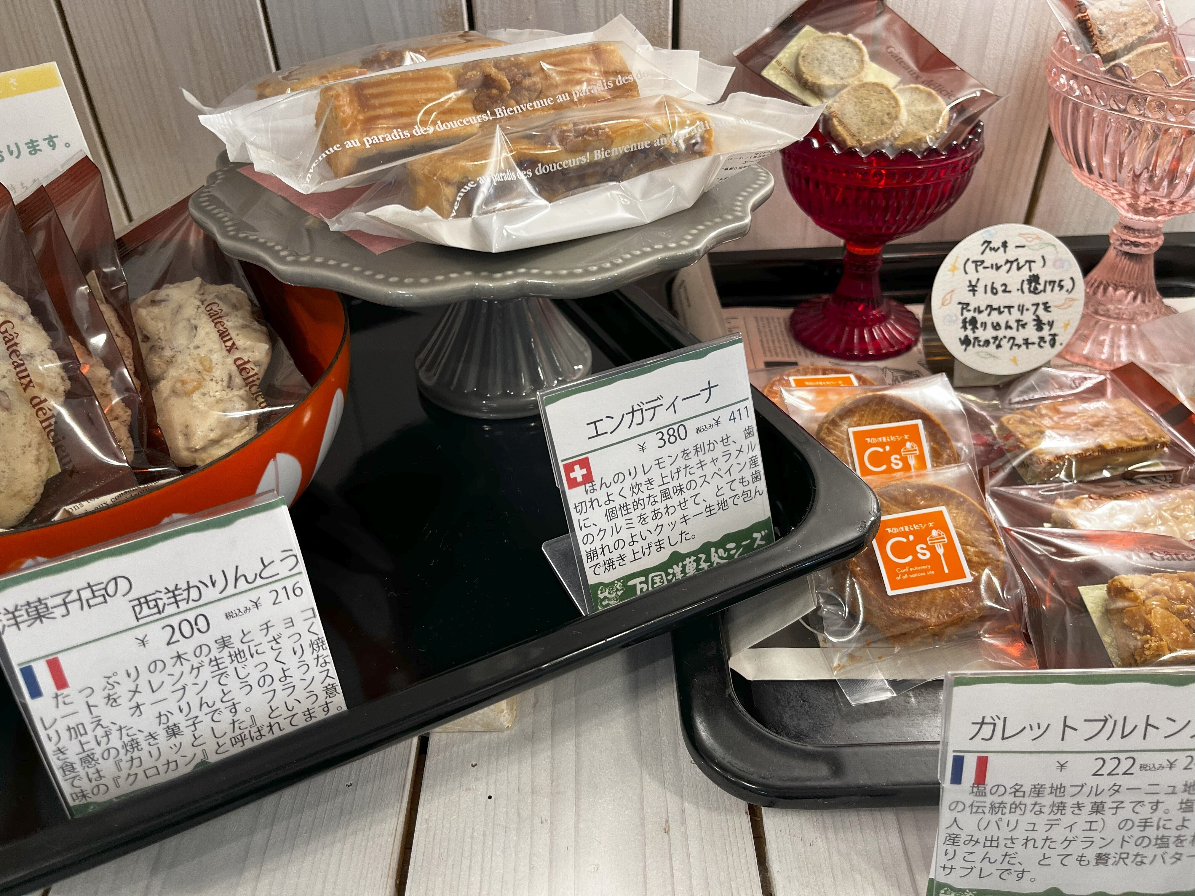 ケーキや焼菓子のプライスカードにはルーツである国の国旗を印字しています。日本ではなじみのない名前のお菓子もありますが食べやすいようにアレンジを加えています。