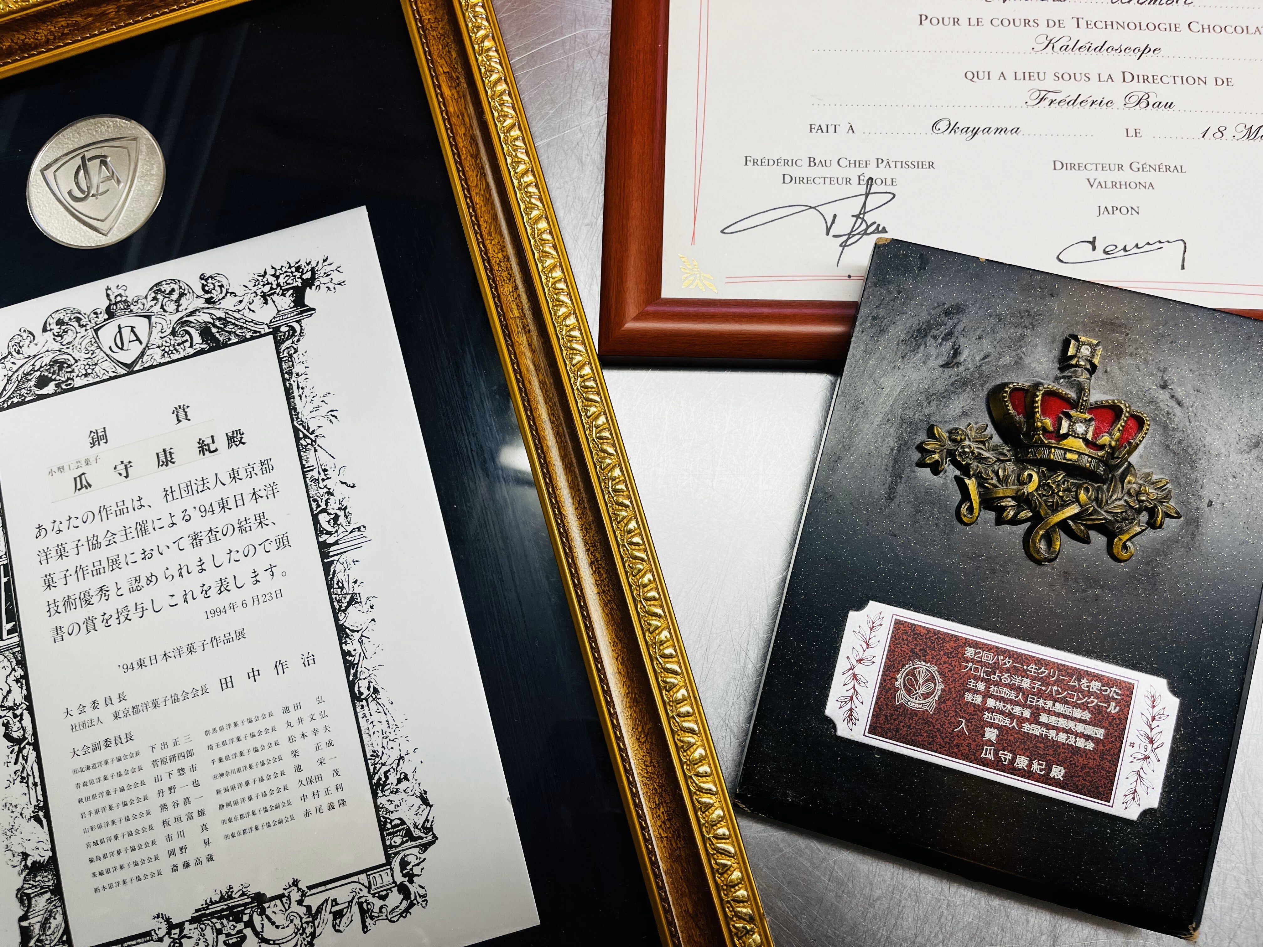 主人は広島県出身で、大阪の製菓学校を卒業し大阪や東京の有名パティスリーや広島の大手洋菓子店で修行し、いつか自分の店舗を持つことを目標に頑張っていました。広島で働いている時に『愛媛で新しくお店を出す人がいてシェフを探している』とお話をいただき愛媛に来ることになったそうです。コンクールに積極的に参加して賞をいただくこともあり、レストランなどにオリジナルスイーツを提案したり熱心にスイーツ作りに取り組んでいました。人に教えるのも好きでお菓子教室の講師をしていたこともあります。