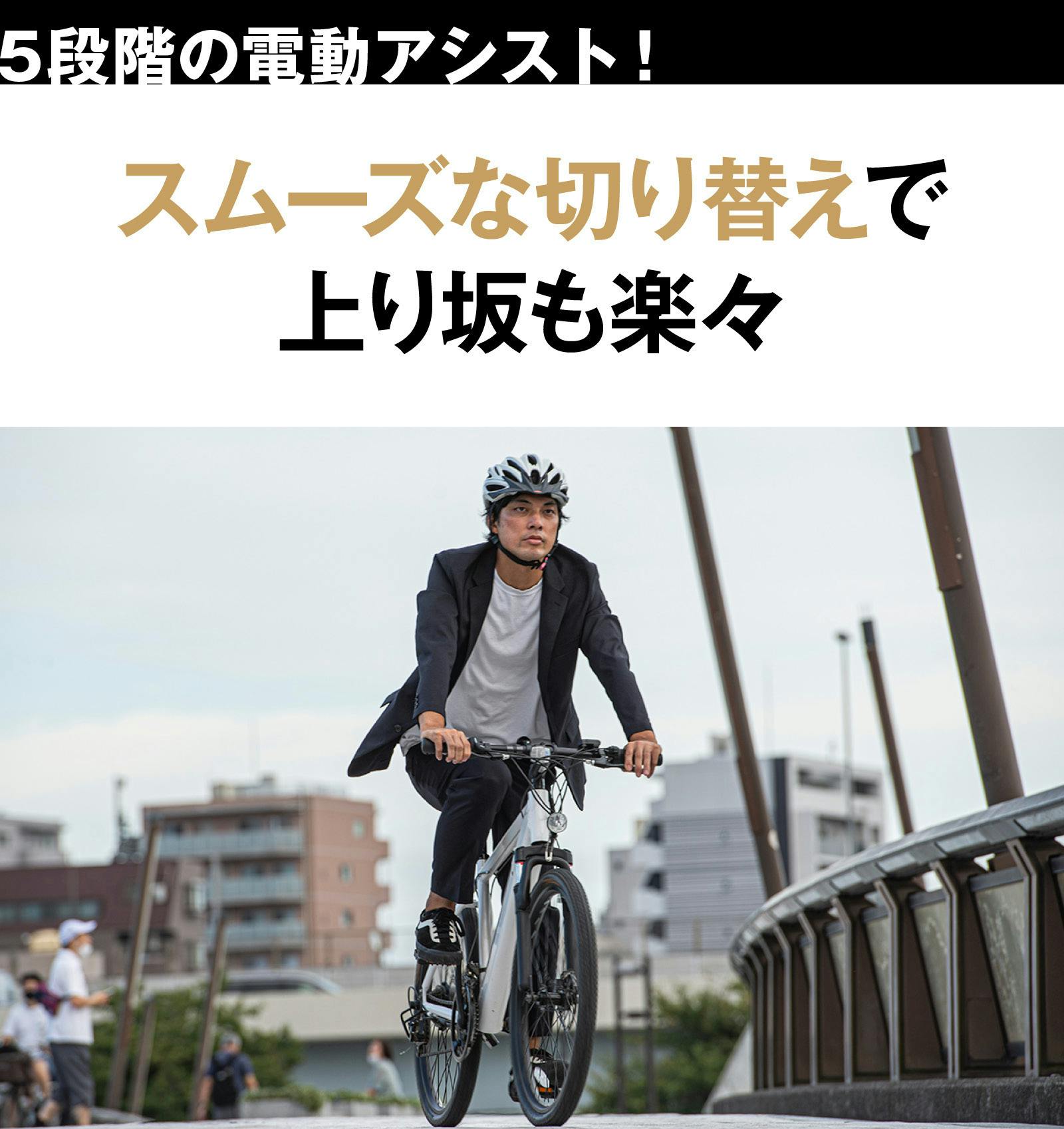 電動パワーが5段階でペダリングをアシスト。駆動力や走行速度により自動的に切り替わります。