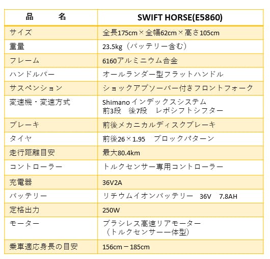 高い走行性能を持つ高機能マウンテンバイクに、電動アシスト機能を融合!5段階アシスト×21段変速のパワフルマシン、「SWIFT HORSE」がついに登場です。