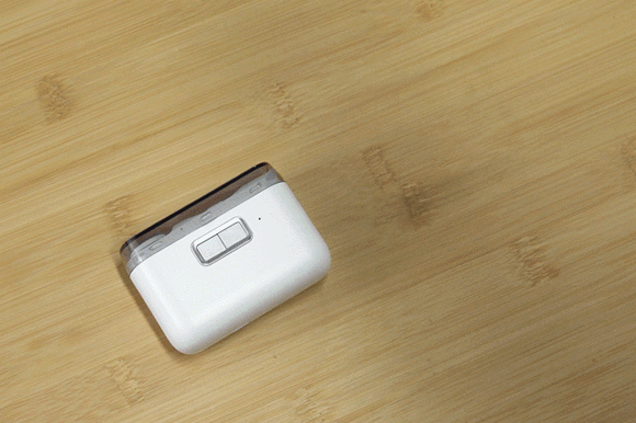 操作は電源ボタンを押すだけで、とても簡単です。ボタンは左右2つに分かれており、右のボタンを2秒長押しすると爪切りを開始、左のボタンを2秒長押しすると爪やすりを開始します。また、速度は2段階から選択できます。