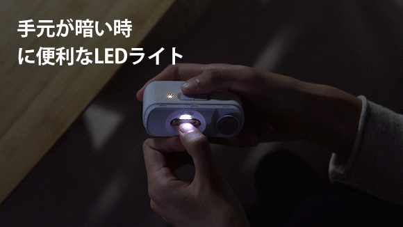 爪を当てる部分のそばにはLEDライトが付いており、爪切りをオンにすると自動で点灯します。手元が暗くて切りにくい時に大変便利です。