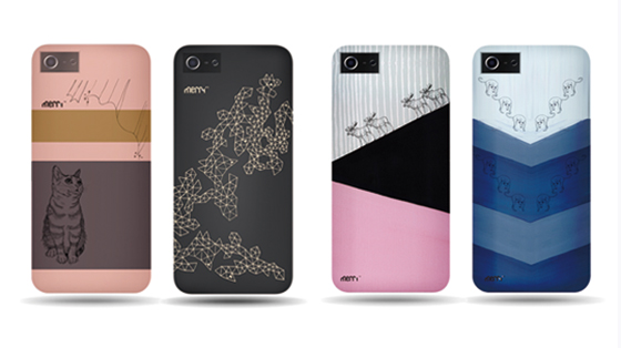 今回発表した4種のタイツと同じモチーフのスマホ(iPhone 4S / iPhone 5 / Android)ケースをCAMPFIRE限定の展開でデザインしました。限定数の展開になりますので、こちらもお見逃しなく!左から、“BEAUTIFUL ORDER” Case Pink (moose)、“LOOKING FOR” Case Blue (dog)、“AURORA CAT” Case Brown (cat)、“PARTIAL BIRD” Case Black (bird)。