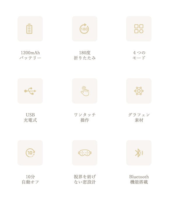 1.空気圧・温熱・音楽・Bluetoothの4つの機能搭載。10分の癒しタイムで目元をしっかりケア。