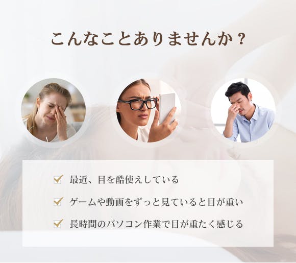 パソコンやスマホは現代人にとってかかせないツールです。仕事だけではなく、自宅でも長時間パソコンやスマホを使う方も多いはず。パソコンやスマホの使用時間が長ければ長いほど、目の重さを感じやすくなります。