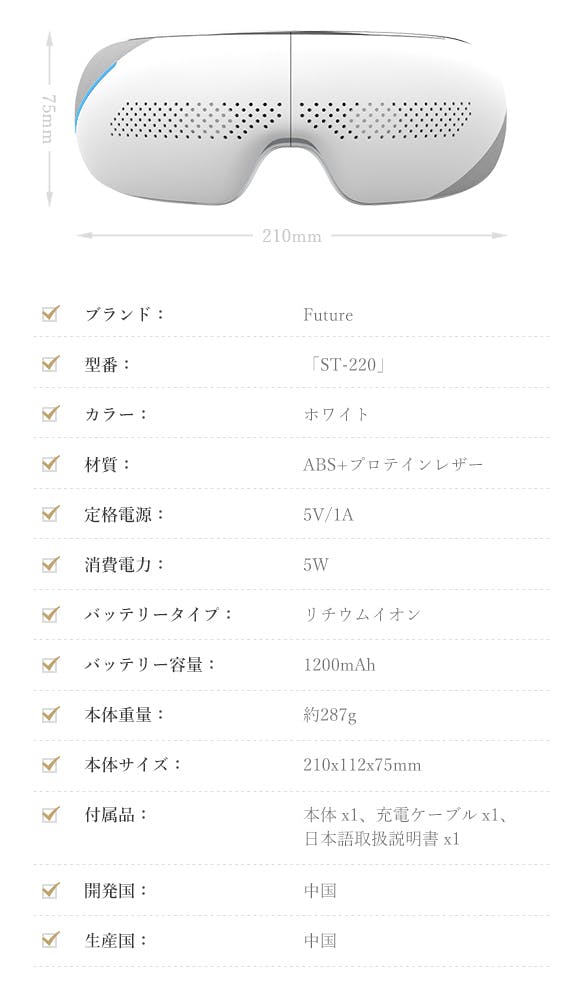 3D立体構造で、こめかみや目の周りをまるで指で押されているような感覚で心地よい感触をもたらします心地よい感触をもたらします。いつでも気軽に、目元エステを楽しめます!