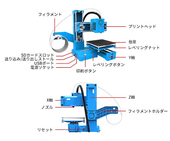 火傷しにくく扱いやすい熱溶解積層方式で、データと素材を用意すれば自在に立体物を作れます。簡単なワンタッチ制御により、子供や初心者でも幅広い物の造形を自作できます。