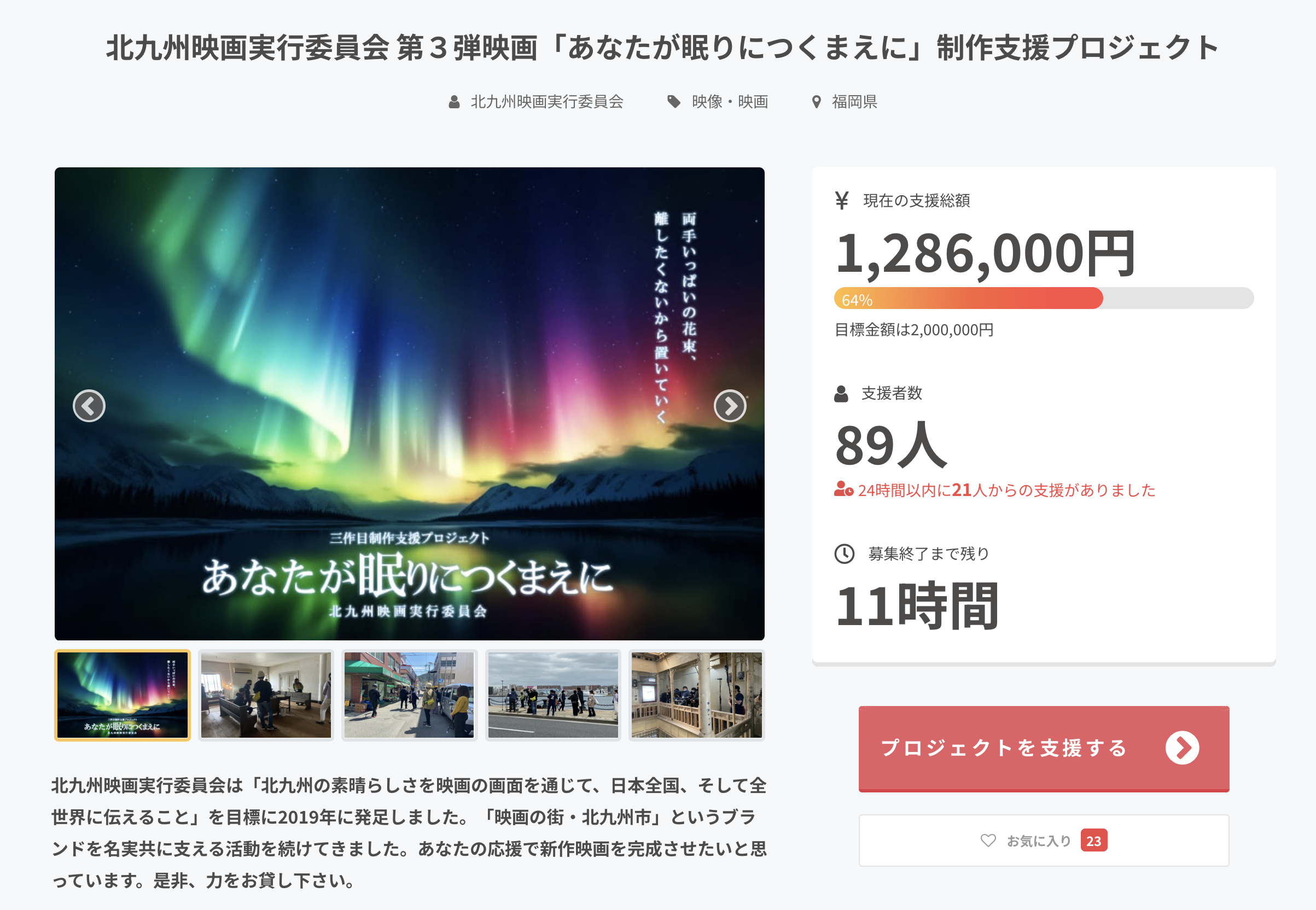 イベント上映会が決定しました!スターフライヤー Presents 北九州映画実行委員会 第三回作品「あなたが眠りにつくまえに」 イベント上映会日時:令和6年7月15日(月・祝)場所:北九州国際会議場 メインホール(福岡県北九州市小倉北区浅野3丁目9ー30)上映時間:① 11:00開演 ② 14:00開演 ③ 17:00開演 ※入場開始は各30分前前売券:¥5,500(イープラスにて、5/27より発売開始)詳細はこちら!https://eplus.jp/sf/detail/4105440001-P0030001