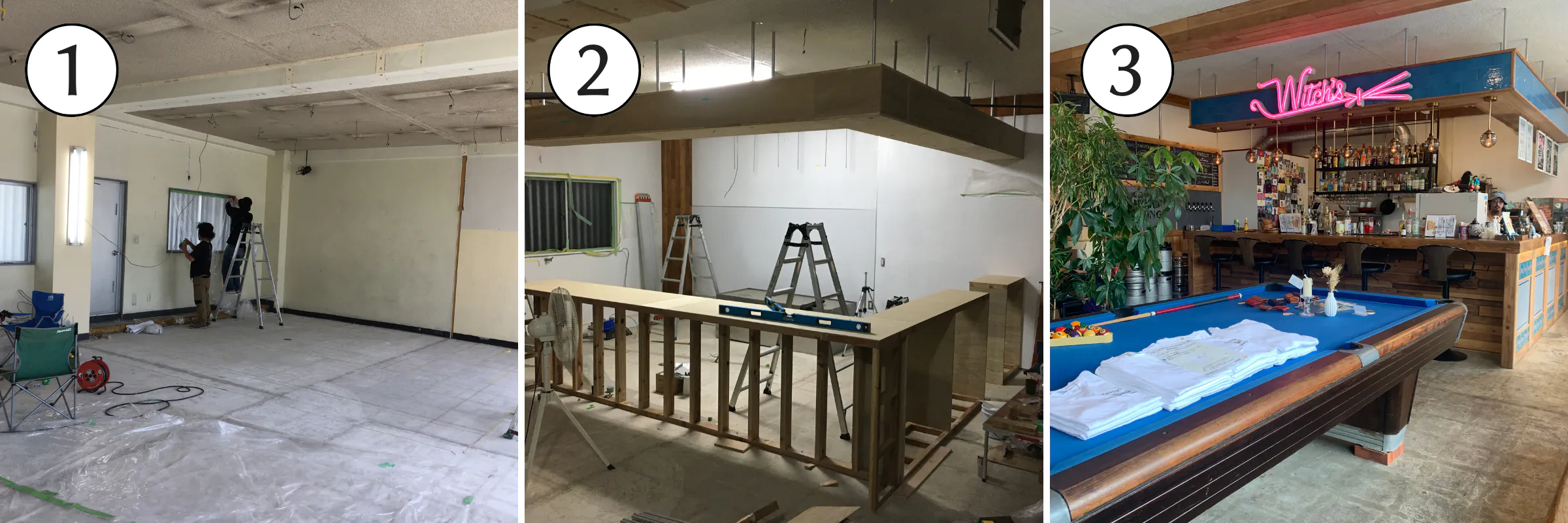 ブルワリー開業への足掛けに、那覇市でキューバサンド&クラフトビール専門店「Witch's」を2021年に創業しました。店舗改装工事は職人さんに教えてもらいながら、自分たちで行いました。DIYスピリッツ!